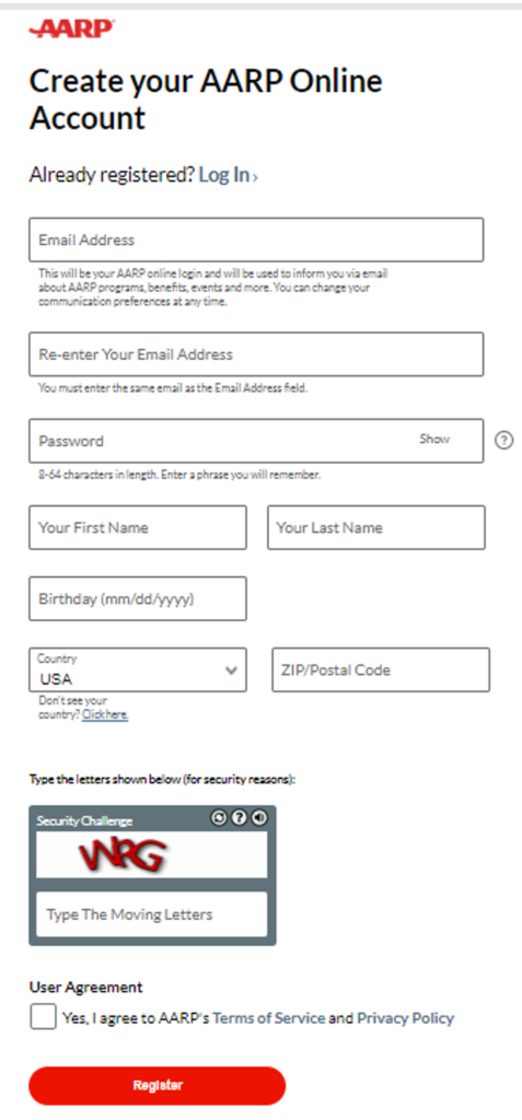 First, go to the website AARP.org and make an account. (You are not joining AARP.)